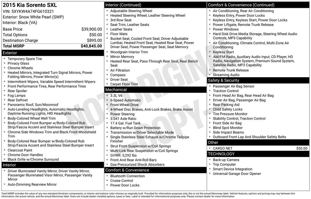 White 2015 Kia Sorento Limited V6 FWD 6-Speed Automatic with Sportmatic 3.3L V6 DGI Dual CVVT